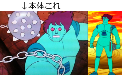 『バビル二世』の強敵ロボット・バラン。実は本体は鉄球であり、鉄球を壊さない限りロボットは倒せない。
